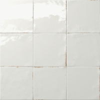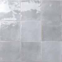 Eine Porzellanfliese im Format 14,7x14,7 cm, in einem hellblauen Farbton mit hochglänzender Oberfläche und einem subtil abgetönten Look.